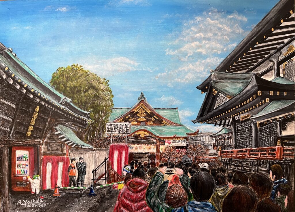『湯島天満宮~願い』2024年作 ジークレー版画 Edition No.1 F4ベニヤキャンバス 28,000円(税込み)